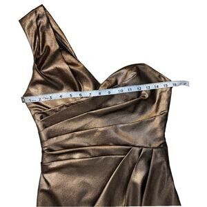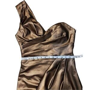 ROBERT RODRIGUEZ Metallic Mini Cocktail Dress One Shoulder Sheath Bronze Size 0