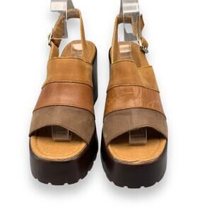 ROC Misty Slingback Sandal Size EU 40 US 8.5-9 Brown Leather Chunky Open Toe Y2K