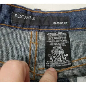 ROCAWARE CLASSIC FIT DARK BLUE DENIM JEANS 34/34, INSEAM 32.5"
