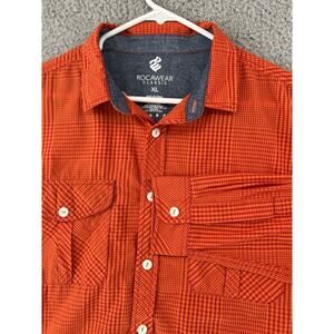ROCAWEAR Classic Gingham Check Long Sleeve Button Down Shirt Men’s XL Orange