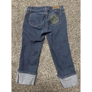 ROCAWEAR Jeans Woman’s Size 5 Denim Embroidered Pocket Cuffed Capri 28x20. Condition is Pre-owned - Excellent. Shipped with USPS Ground Advantage.