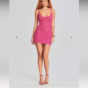 The Rocco Dress is the elevated beachwear look that you will reach for all summer long. The casual crochet dress is adorned with pearls and finished with a scoop neckline. Perfect as a cover-up or for a night out, this look will effortlessly transition you from seaside to cocktail hour. Shown here in Rose Pink.