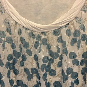 ROCHA JOHN ROCHA BRAND BLUE AND WHITE FLORAL DESIGN LINED WITH BALLOON HEM