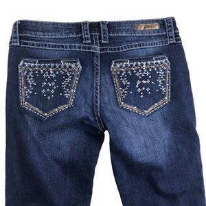 ROCK 47 Wrangler Jeans Bootcut Ultra Low Rise Embellish Stud Embroider Size 30x30.