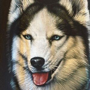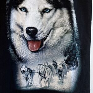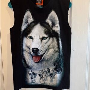 ROCK EAGLE CLASSIC BRAND BLACK SLEEVELESS TEE SHIRT WITH HUSKY DOG PRINT SIZE SM
