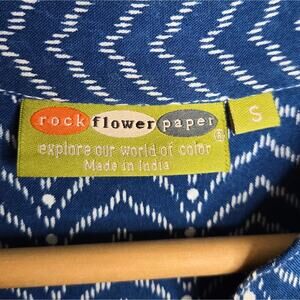 ROCK FLOWER PAPER Blue and White Patterned Womens Top 3 Quarter Length Sleeves