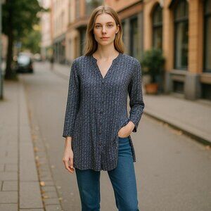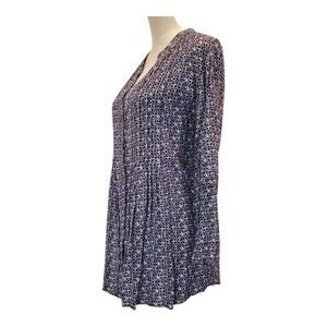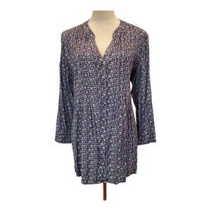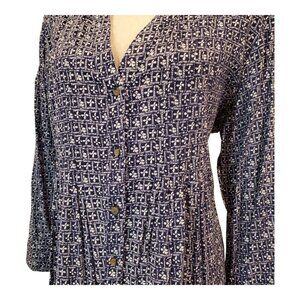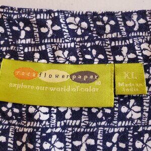 ROCK FLOWER PAPER SZ XL Women's Casual Flowy Pleated V-Neck Top Blouse Tunic 100% Rayon Navy blue & white print