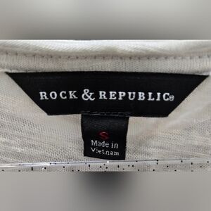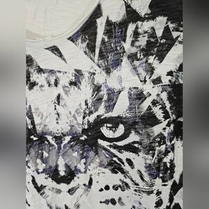 ROCK & REPUBLIC Animal Print Black/Tannish Gray Shirt, size S. Tiger print on front with purple and silver foiled accents. Excellent condition. Hardly worn.