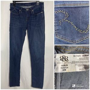 ROCK & REPUBLIC Jeans Denim Low Rise Rhinestone Pockets Womens 6 Dark Wash Blue