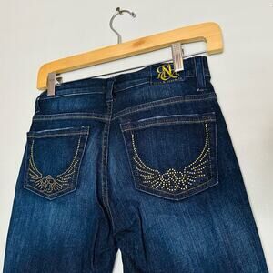 ROCK & REPUBLIC Kasandra Dark Bedazzled Wings Back Pockets Denim Jeans Size 2
