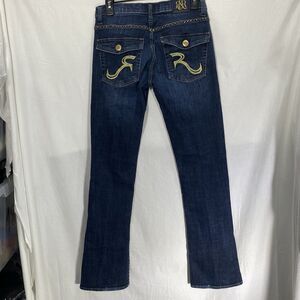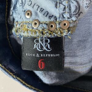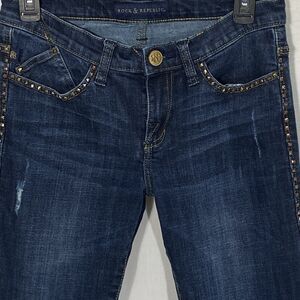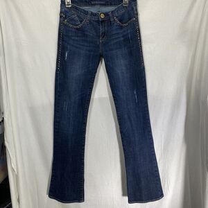 ROCK & REPUBLIC Kasandra Jeans Flare Low Rise Studded Embroidered Womens 6 Blue