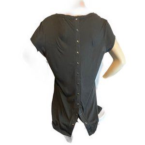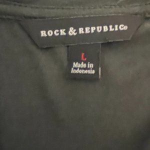 Rock & Republic Black & Silver Studded “Ride to Live” T-Shirt. SLIT IN THE BACK WITH SNAPS TO ADJUST THE OPENING. SIZE LARGE NWT