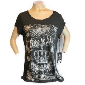 ROCK & REPUBLIC LIVE TO RIDE TSHIRT WITH RHINESTONE EMBELISHEMENTS NWT SIZE L