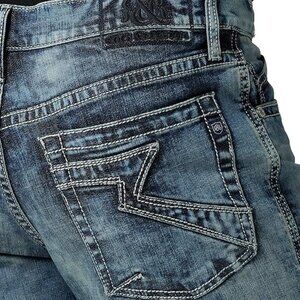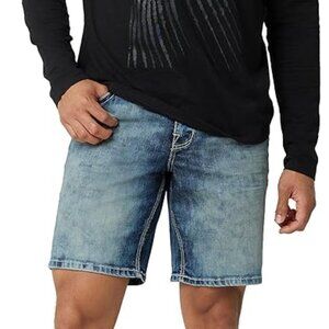 ROCK & REPUBLIC Men's Cooper Slim Hip & Thigh Jean Shorts Sz 36 Blue (Hit Man)