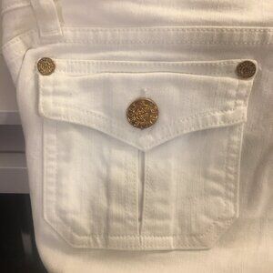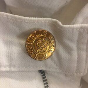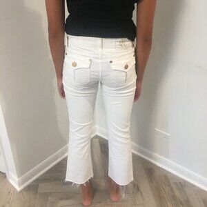 ROCK & REPUBLIC White Kiss Boot Cut Crop Raw Edge Hem Gold Buttons Jeans 28