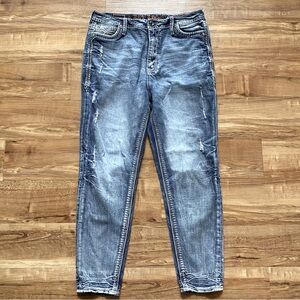 ROCK REVIVAL 33 Cocoon High Rise Curvy Ankle Skinny Embellished Distressed Jeans Y2K Style
