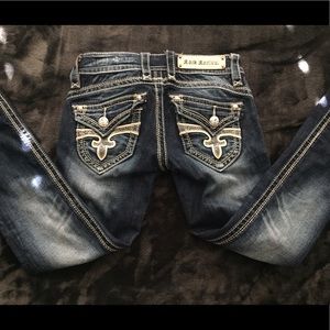 Gorgeous Jeans with Amazing sanding detail throughout! Thick iconic stitch detail that Rocks are known for! Excellent condition. 29 inch inseam, can be worn cuffed or as is. Must have jean for your collection! These are "Heather Capri style" Please Take note that i price my denim at great prices and consider that when putting an offer in, please NO Lowballing😉 I DONT TRADE! PRICE IS FIRM!