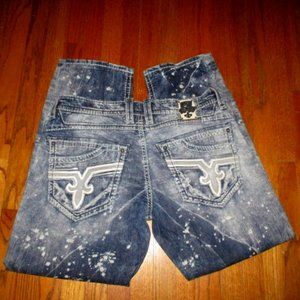 ROCK REVIVAL Chenko Straight Acid Splatter Jeans Sz 38