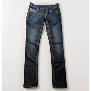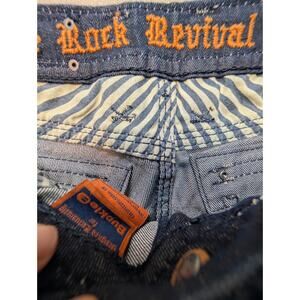 New without tags Y2K, Western, Rock Revival, Buckle jeans. The actual waist size is closer to a 29. See measurements below.