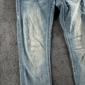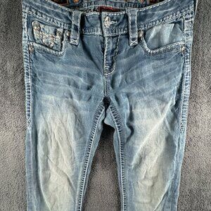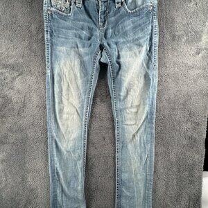ROCK REVIVAL Women BETTY Straight Designer Blue Jeans Embellished Size 27 Adult