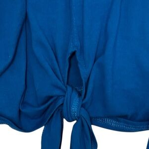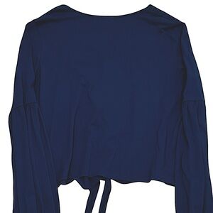 • Has front tie at waist. Sleeves have a ballon style with elastic band The top portion of the sleeve is fitted.