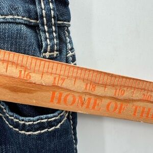 ROCK & ROLL Cowgirl midrise cotton-spandex embellished pocket bootcut jean 32