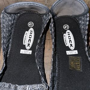 Like new condition pair of women’s flats/slip on shoes, black, and white in color- made by ROCK SPRING. Euro size 41.-