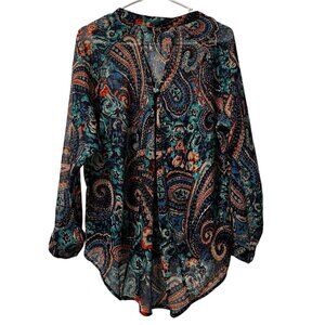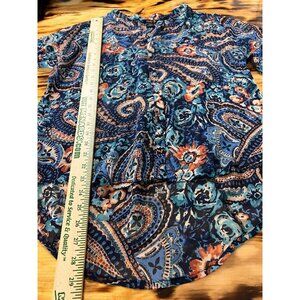 ROCK47 SHEER ROUNDED FLOWING BUTTON FRONT TUNIC Top Size Medium Western Colorful