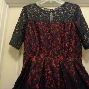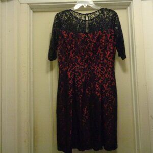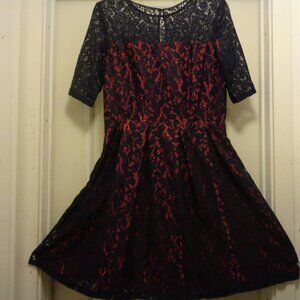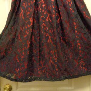 ROCKABILLY BABY PINUP BLACK & RED LACEY DANCE DRESS BY GABBY & SKYE 8. THIS IS SUCH A GREAT LITTLE DRESS. AND IT IS SO PRETTY AND LACEY. FROM UNDERARM TO UNDERARM ALL THE WAY AROUND THE ITEM IS 36 INCHES. ALL THE WAY AROUND THE WAIST LINE IS 31 INCHES. AND THERE IS A BACK ZIPPER. THERE IS SLIPPERY RED SATIN UNDERNEATH. NYLON IS THE SHELL AND THE LINING IS POLYESTER. WITH LIGHT WEAR YET PLENTY TO SHARE WITH YOU LUCKY BUYER. ENJOY THE DRESS. 4TH GROUP. #681. THANKS