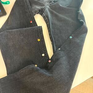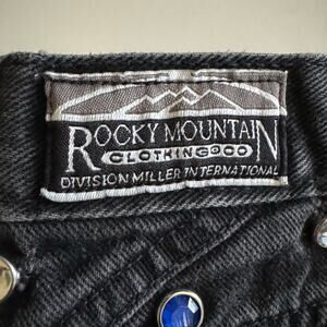ROCKIES ROCKY MOUNTAIN Jeans 26 VTG Black Washed Bare Back Rhinestone Cowgirl