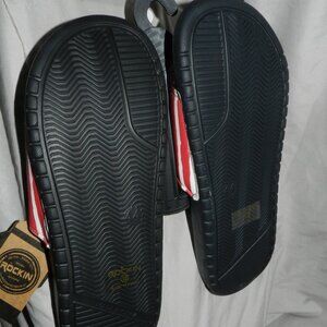 ROCKIN FOOTWEAR SANDALS PATRIOTIC FLAG USA MENS POCKET SLIDES 💥🆕NWT!