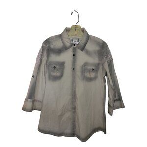 Keywords: Jolt, button up, blouse, top, 3/4 sleeve, gray, embellished, embroidered, casual, western, bohemian, festival