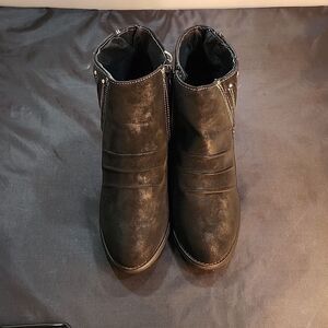 Suit for spring, summer, autumn and winter wear, casual, office, work, date, party, travel, street, cocktail, everyday wear and so on.Ankle booties for women, mid heeled, round toe, size zipper, pleated upper, with chunky stacked heel, fashion walking booties.Based on the zipper design, for easy take on and off, and make the shoes more good to your feet.Durable TPR sole and PU upper. Environmental, wear resistant, smooth and easy to clean. Comfortable and fashionable to wear.