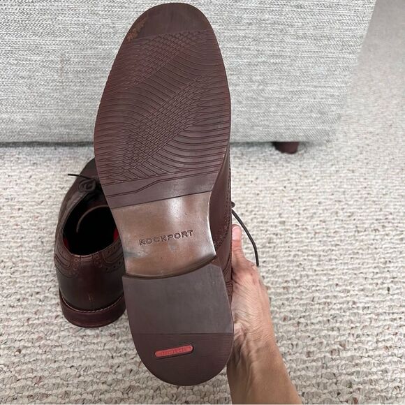 ROCKPORT Men’s Wingtip Oxford Dress Shoe Brown Leather Brogue Medallion Toe