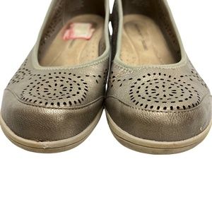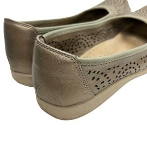 ROCKPORT Metallic Pewter Laser Cut Out Flats Slip On Loafers Genuine Leather 7.5
