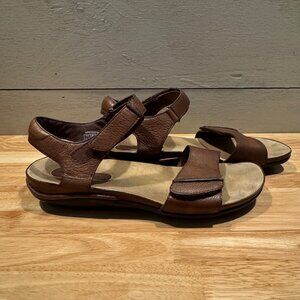 ROCKPORT ~ Sandals Women Size 9.5 - Brown Leather Low Wedge w Adjustable Straps
