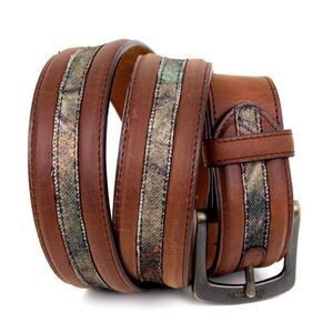 ROCKY BROWN GENUINE LEATHER 1.5"Wd COMO CANVAS CASUAL MEN'S BELT Sz 36 (B52