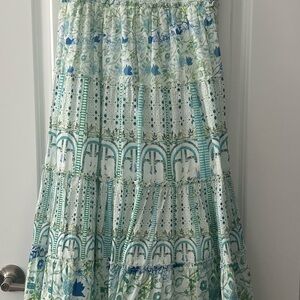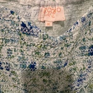 ROCOCO SAND Elan Womens Dress M Blue Green Print Smocked Sleeveless Maxi