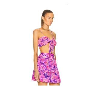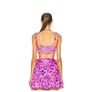 Rococo Sand's top draws the eye to a vibrant floral motif with metallic threading throughout and front tie closure that gracefully grazes the bodice. Pair with the matching skirt to complete the look.