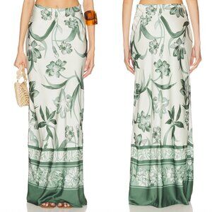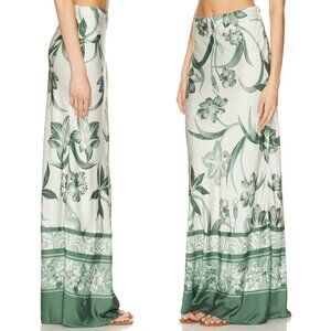ROCOCO SAND Maxi Skirt in Sage Green White Pattern Satin XS