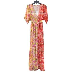 ROCOCO SAND Nesh Maxi Dress Orange tie belt prom polka dot print Yellow Floral revolve slip v neck belt