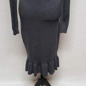 ROCOROSE Dark Gray Bodycon Mock Neck Long Sleeve Midi Ruffle Mermaid Dress M