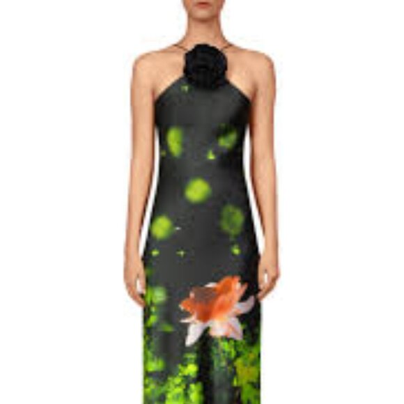 RODARTE Spring 2023 era silk maxi slip dress in floral / garden pattern / Floral-Appliquéd Silk Maxi Dress