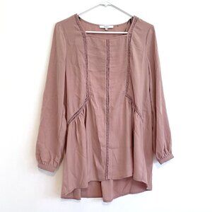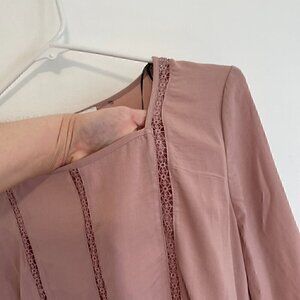 RO&DE ANTHROPOLOGIE Mauve Pink ish Crochet Lace Long Sleeve Boho Peasant Blouse