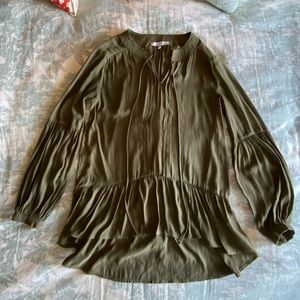 RO&DE Olive Color Peasant/Hi-Low Blouse, Long Sleeve