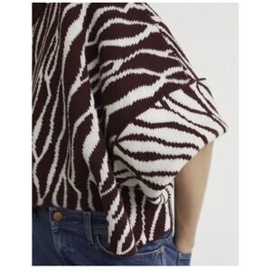 The sweater has a wide rib collar and the sweater is designed for a loose fit. The shoulders are dropped and the sleeves are wide and just below the elbow. The sweater has a beautiful reverse pattern on the inside, which creates a beautiful cuff on the sleeves.