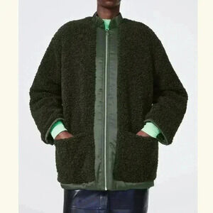 Alora is a faux fur shell jacket made in a relaxed fit and sleeves in regular length. It’s designed with dropped shoulders and ends in mid-thigh length. Alora has a zip at front, a ruched collar, and a quilted lining. This jacket is not only cozy and comfy but also sustainable, made from post-consumer recycled polyester – certified by GRS (Global Recycled Standard). Comes in the two colors Pearl and Ivy Green.