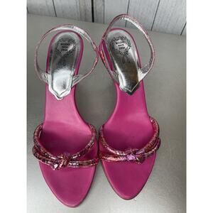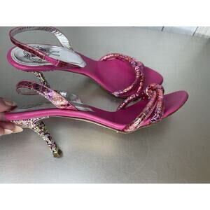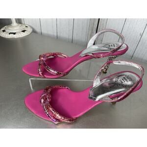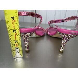 RODO Made In Italy Colorful Rhinestone Crystal Studded Heels Pink Slip On Sz 37