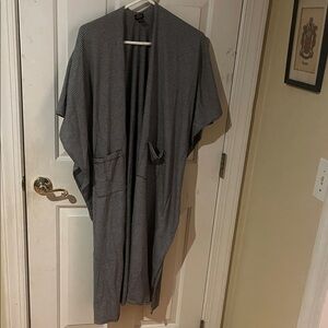 Stylish black and white striped kimono with pockets. Perfect for layering.