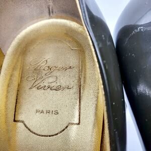 ROGER VIVIER Forrest Green Gold Patent Leather Heel Made in Italy Sz 39.5 US 8.5